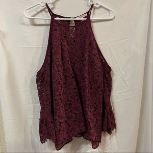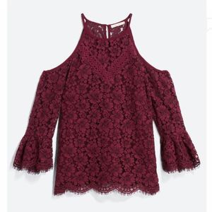 Skies Are Blue Lia Cold Shoulder Lace Blouse