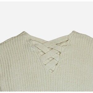Skies Are Blue Oatmeal Sweater Criss Cross Back Small Chunky Knit Cozy Casual
