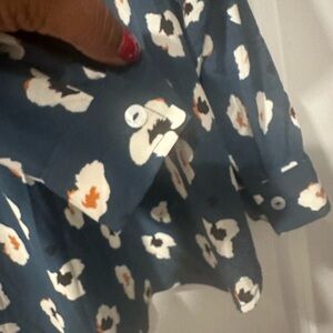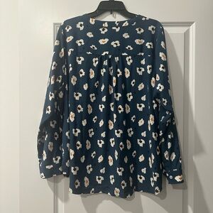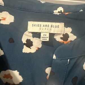 Skies Are Blue Overlay Button Down Front Pocket Long Sleeve Floral Top, 2x
