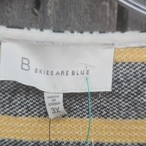 Skies Are Blue Patterned Cardigan with Yellow and Black Stripes