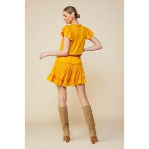 Skies Are Blue Satin Smocked Waist Ruffle Mini Dress Small Gold Cocktail Event