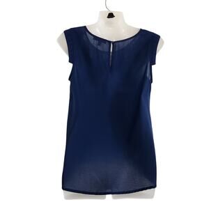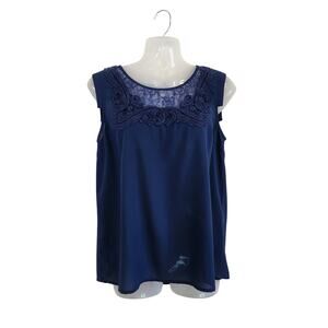 Skies Are Blue Sleeveless Embroidered Floral Blouse Keyhole Back Blue Size Small