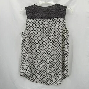 Skies Are Blue Sleeveless Slip On White w/black Patterned Blouse Top