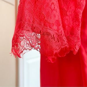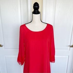 Skies Are Blue Small Red Orange Tunic Long Sleeve Dress with Lacy Lower Sleeve
