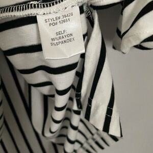 Excellent preowned condition, no rips stains or tears. Loose fit Black and white striped V-neck and ruffle ruffle sleeve Accent. Measurements laying down
