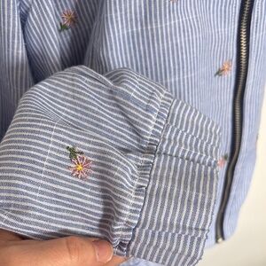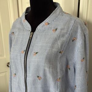 Skies Are Blue Stripes Jacket with Floral Embroidery. NWT. Size XL.