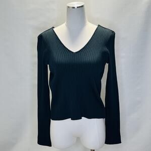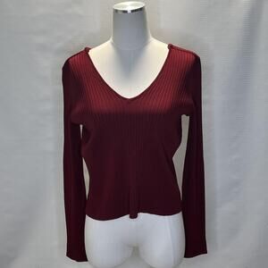 Skies Are Blue Sweater Womens Large Black Red Pink Ribbed V Neck Pullover Lot 3