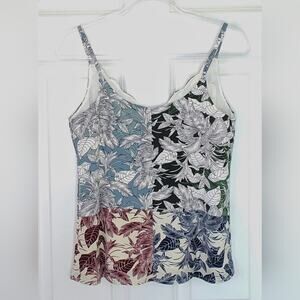 Skies Are Blue Tank Top Multi-Colored Botanical Print Scalloped Neck Size XS