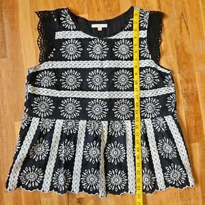 Skies Are Blue Top Womens M Black White Embroidered Crochet Trim Boho Festival