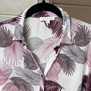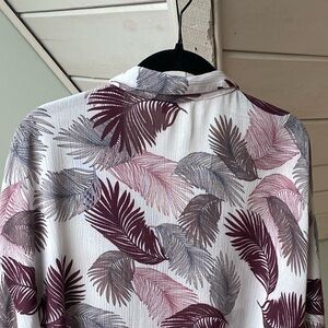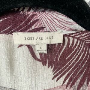 Skies Are Blue Tropical Palm Bat Wing Collared Ruffled Tie Top Size Large 100% Rayon