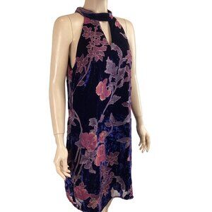 Skies Are Blue Velvet Floral Halter Dress Size Medium Shift Keyhole