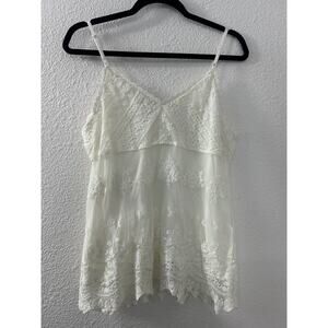 Skies Are Blue White Lace Floral Tank Top Size S Coquette Boho Frilly Whimsy