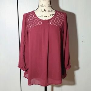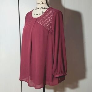 Skies Are Blue- Womens Dark Pink Sheer sleeves Fully lined Cut out Top Sz.Medium