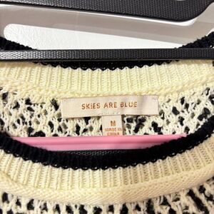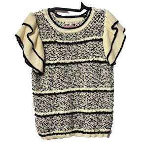 Skies Are Blue Womens Ivory Black Ruffle Frill Detail Ribbed Hem Sweater Size M