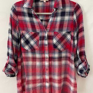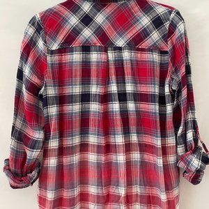 Skies Are Blue Womens Multicolor Flannel Plaid Pockets Button-Up Shirt Size S