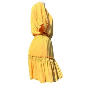 Skies Are Blue Yellow Ruffle Jacquard Tiered Mini Dress New With Tags Size Small