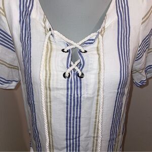 Skies Are Blue dress short sleeve lace up White Blue Stripe cotton blend small