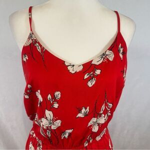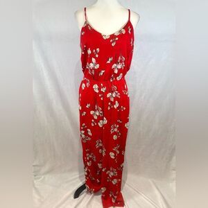 Skies Are Blue red and white floral smocked jumpsuit size medium