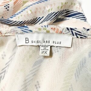 Skies Are Blue ruffle boho top 2X stripe blouse shirt sleeveless white spring