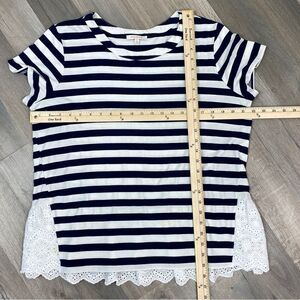 Skies Are Blue Michelle Striped Eyelet Hem Shirt Top Blue White XL
