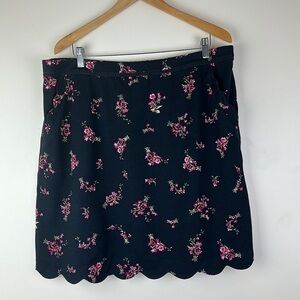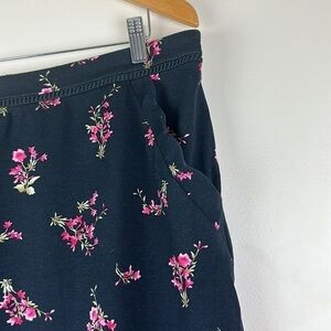 Skies and Blue Woman’s Skirt 1X Knee Length Pockets Elastic Waist Scallop Hem Floral