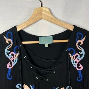 Skies are Blue Black & Pastel Floral Short Sleeve Mini Shift Dress M