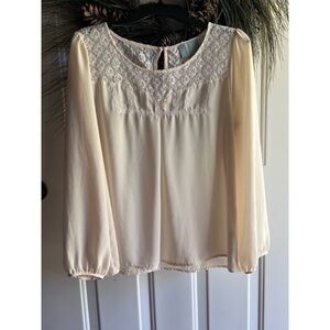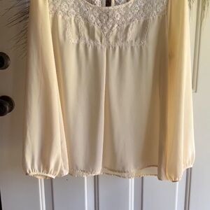 Skies are Blue Off White Long Sleeve Top/Blouse/Shirt with Lace detail Size L