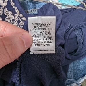 This top is.in gently used to. It is a lightweight jersey knot. Features embroidery on the front and back. Please see photos for details.