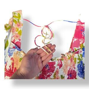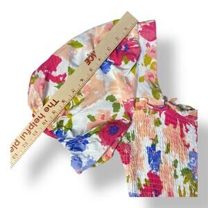 Skies are Blue Spring Summer Floral Short Sleeve Smocked Jumpsuit Size M Easter