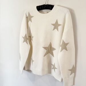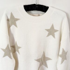 Chic sweater with star pattern and plaid skirt. Perfect for casual outings.