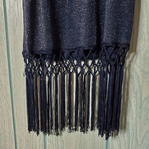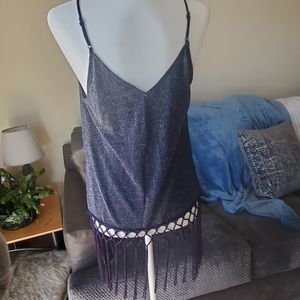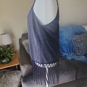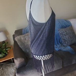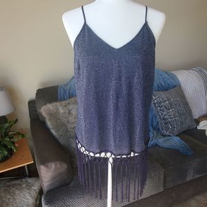 Skies are Blue glitter navy fringe tanktop L