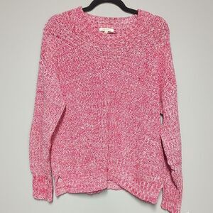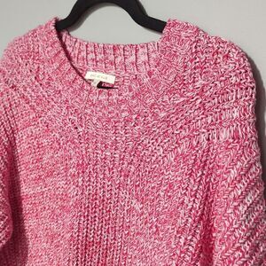 Red and White Cable Knit Sweater. Fun knit design throughout.