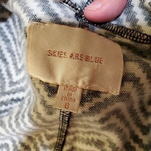 Skies are blue convertible cardigan size small length is 30in from shoulder to end of sleeve is 25in measurements are approximate not exact and is not doubled and are measured with the item laying flat this item can be worn in the pics or as a open front cardigan