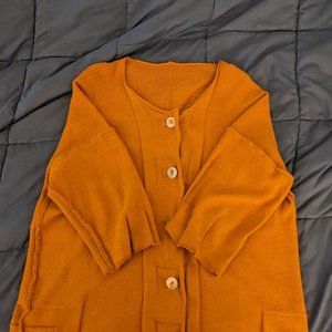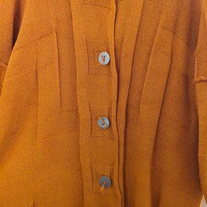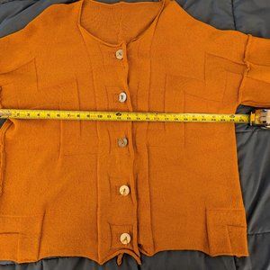 Lovely hand knit cardigan from Skif International. Round metal buttons, has somewhat of a deconstructed style (ex. sleeve seams on outside). This cardigan has no sizing, Skif makes more of a "one size fits most" style so please see measurements. For perspective I usually wear a women's L-XL and this fits me comfortably with lots of room and flow to it. 3/4 sleeve although since it's quite baggy, I find with my arms down it's close to a full sleeve so just depends on how big or small you are!