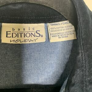 Skiing Snowman Holiday Denim Shirt Velvet Collar Sz Small