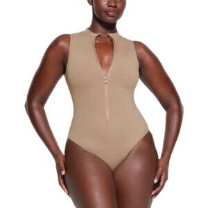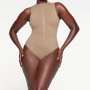 Skims 3X SWIM ZIP FRONT SLEEVELESS ONE PIECE Desert Tan NWT