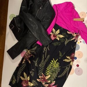 Skims bodysuit crewneck, long sleeve, fuchsia new. see other items in my closet for separate purchase as styled in last picture.Get ready for Soring!!