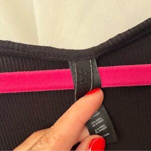 Stylish black ribbed top with a vibrant pink accent. Perfect for casual wear.