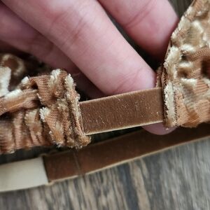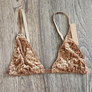 Velvet and mesh fabric subtly highlighting SKIMS logo in a gorgeous chai color!