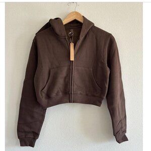 Skims Cotton Fleece Cropped Zip Up Hoodie in Dark Sepia, Size Medium