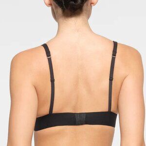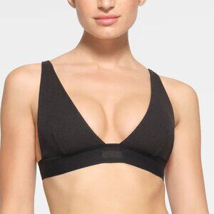 Skims Cotton Rib Plunge Bralette - Soot Black Size Medium