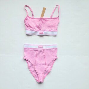 Skims Cotton Rib Scoop Bralette & Cotton Rib High Waisted Briefs Bubble Gum Pink