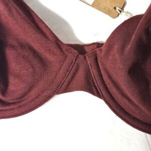 Very soft and comfortable. 90% cotton, 10% elastane fabric with mesh lining. Underwire cups, adjustable straps and hook and eye back closure. Sangria color.