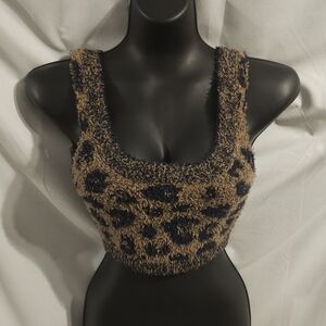 Skims Cozy Knit Scoop Neck Bralette Leopard Size S/M NWOT