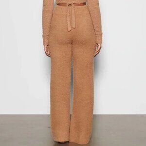 Skims Cozy Knit Wide Leg Sweater Pants S/M Camel Teddy Bear Boucle