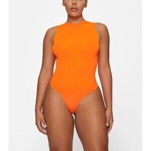 Skims Essential Crew Neck Sleeveless Bodysuit Orange Highlighter L/XL
