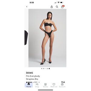 Skims Fit Every Day Strapless Black Bra Size 34DD Style BA-BAN 9055