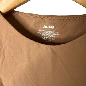 Skims Fits Everybody High Neck Bodysuit Tan Size Small Thong Back