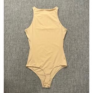 Skims Fits Everybody High Neck Thong Bodysuit Sand Beige Size XS Nude Shapewear