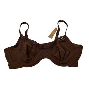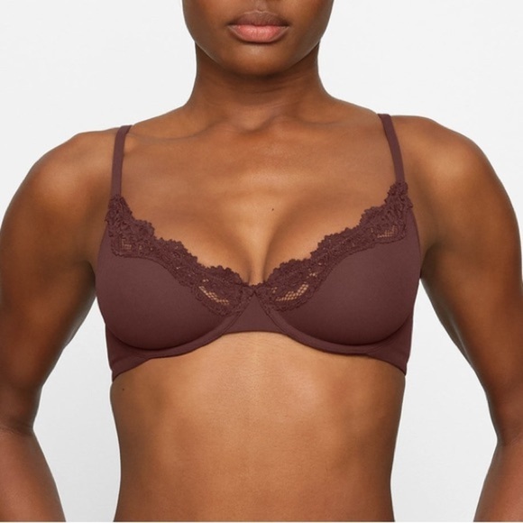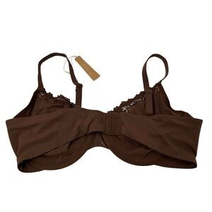 Skims Fits Everybody Lace Underwire Unlined Scoop Bra in Cocoa Brown Size 46D